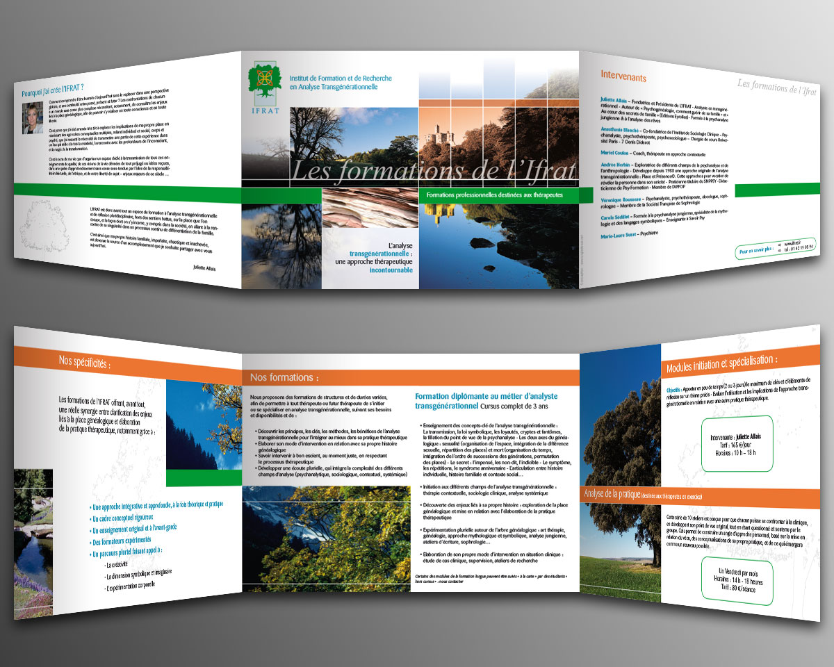Infographiste Indépendant, création de charte graphique dépliant 3 volets formation développement